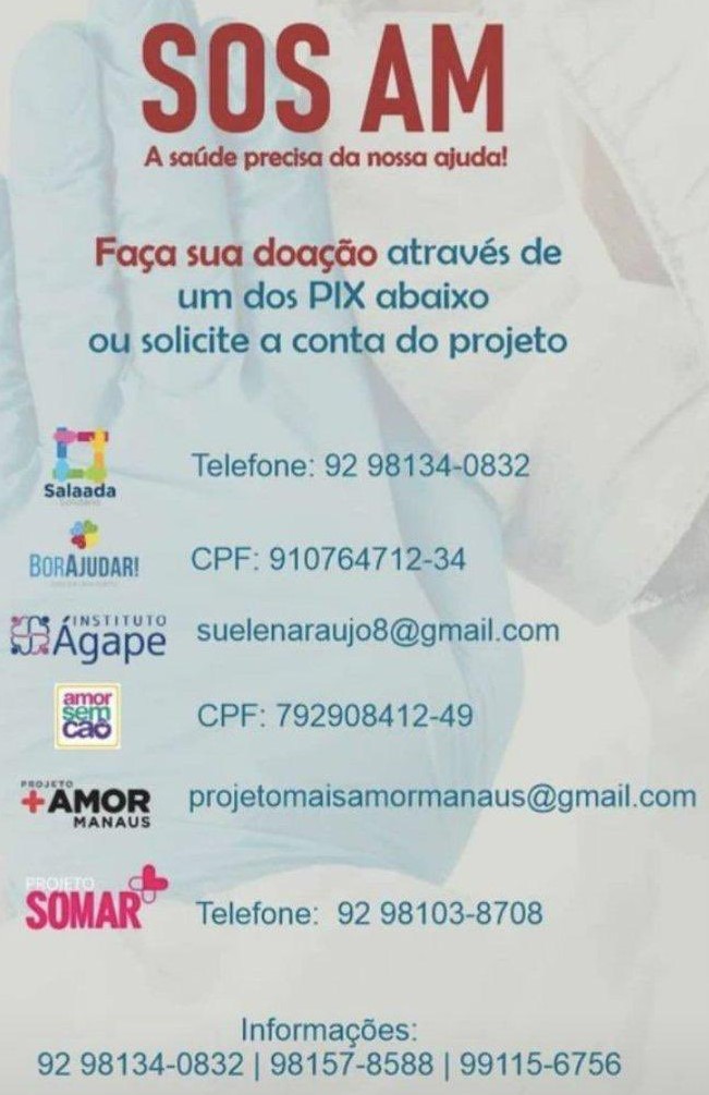 Jovens do cenário musical manauara (Arco e Rap) se mobilizaram diante o desespero enfrentado pelos familiares que perderam seus parente asfixiados. Já foram doados cilindros, EPIs e outros insumos hospitalares para pelo menos 4 hospitais da capital.