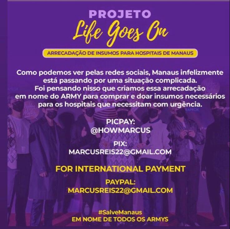 O projeto do Marcus Reis é uma ação conjunta com os fãs do grupo sul-coreano, BTS. Através das redes ele conseguiu arrecadar R$4.558,00 em menos de 24 horas. O dinheiro foi doado integralmente ao projeto Mais Amor Manaus.