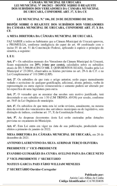 Já os vereadores da cidade, que tiveram o reajuste concedido pelo presidente da Câmara Municipal de Borba, vereador Edilson Batista (PP), vão receber por mês, até 2024, o valor mensal de R$ 9 mil.