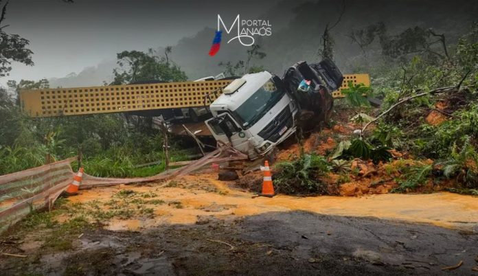 O deslizamento deixou ao menos um morto. O corpo da vítima foi encontrado por volta de 4h20 desta terça, 29, segundo a Polícia Rodoviária Federal, que emite boletins sobre quedas de barreiras desde ontem.