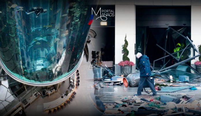 O Aquadom, um enorme aquário instalado no hotel Radisson Blu, na cidade de Berlim, na Alemanha, estourou na manhã desta sexta-feira,16/12. O tanque cilíndrico era considerado o maior do mundo nesse formato, com 14 metros de altura e 11 metros de diâmetro. A atração abrigava mais de 1.500 peixes de cem espécies tropicais diferentes.