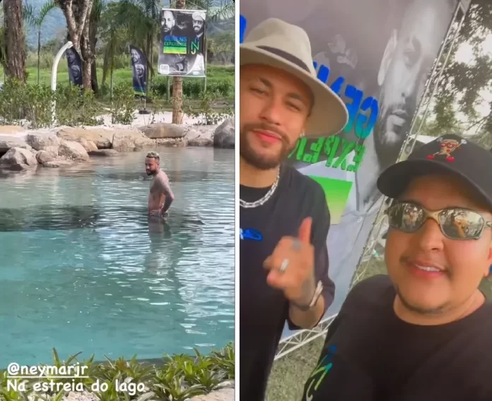 Além de entrar no lago proibido, o jogador aproveitou e posou para fotos, deu autógrafos e interagiu com o público, que estava no local. Neymar também recebeu participantes do curso e reality show da Genesis Experience, que comandou a obra, e outros parceiros do negócio.