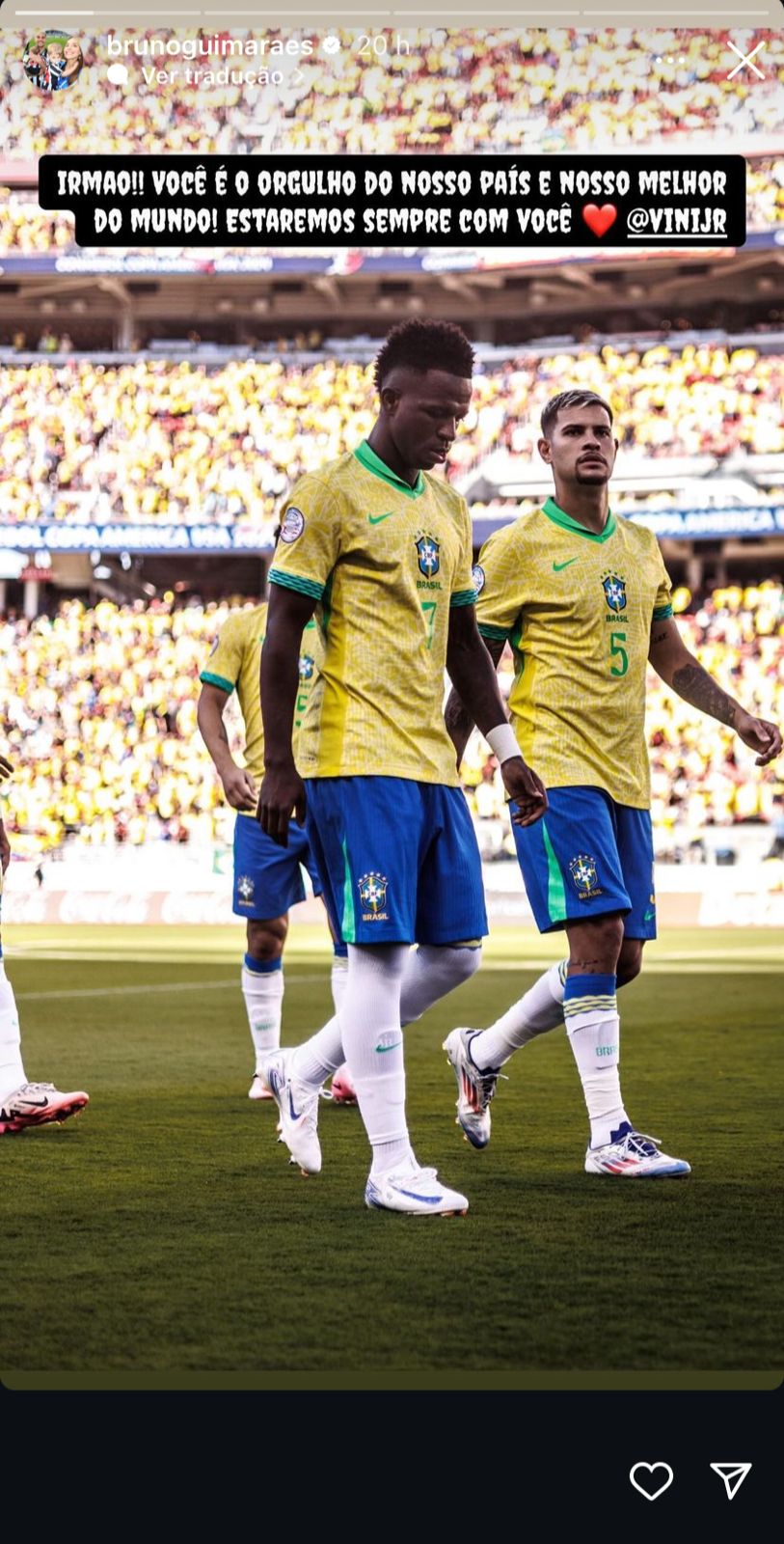 Companheiros de Vinicius na Seleção Brasileira como, Eder Militão, Richarlison e Bruno Guimarães também prestaram apoio ao jogador: