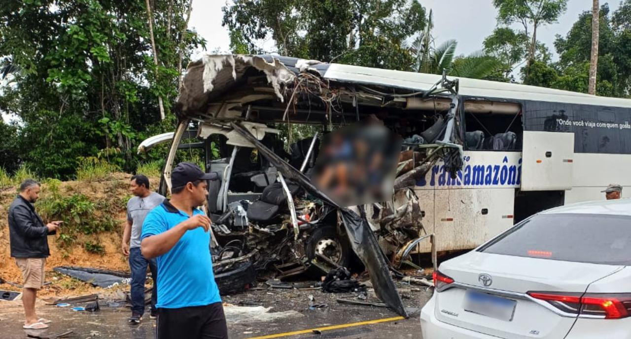 Um grave acidente entre um ônibus e uma carreta na Rodovia Estadual AM-010 deixou diversos mortos e feridos, na manhã desta sexta-feira (20). De acordo com as primeiras informações sobre o ocorrido, ainda há pessoas presas às ferragens.