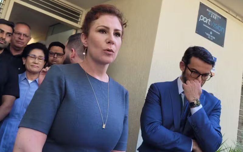 A parlamentar convocou uma entrevista coletiva em frente ao diretório estadual do PL, em São Paulo, e compareceu ao lado do seu advogado, Daniel Bialski. Zambelli preparou um “dossiê” a jornalistas para sustentar que há inconsistências no julgamento e no relatório da Polícia Federal que a incrimina.