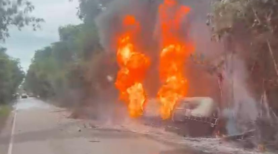 Um grave acidente envolvendo um caminhão-tanque causou momentos de tensão nessa terça-feira, 10, no km 1129 da BR-174, rodovia que liga Manaus (AM) a Boa Vista (RR). O veículo tombou e explodiu próximo à Reserva Indígena Waimiri Atroari e à área da Mineração Taboca, gerando uma grande coluna de fumaça e assustando motoristas que trafegavam pela região.