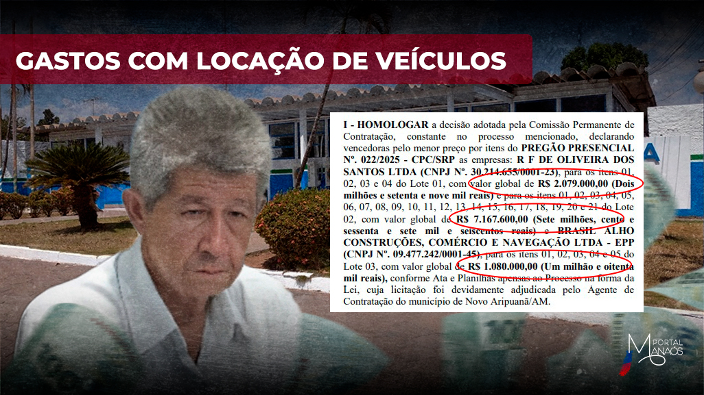 A Prefeitura de Novo Aripuanã, comandada pelo prefeito Raymundo Lopes, conhecido como “Raiz” (União Brasil), homologou um contrato milionário que prevê a locação de veículos, máquinas e embarcações para atender diversas áreas da gestão municipal. O extrato foi publicado no Diário Oficial dos Municípios nesta quarta-feira, 25 de junho de 2025.