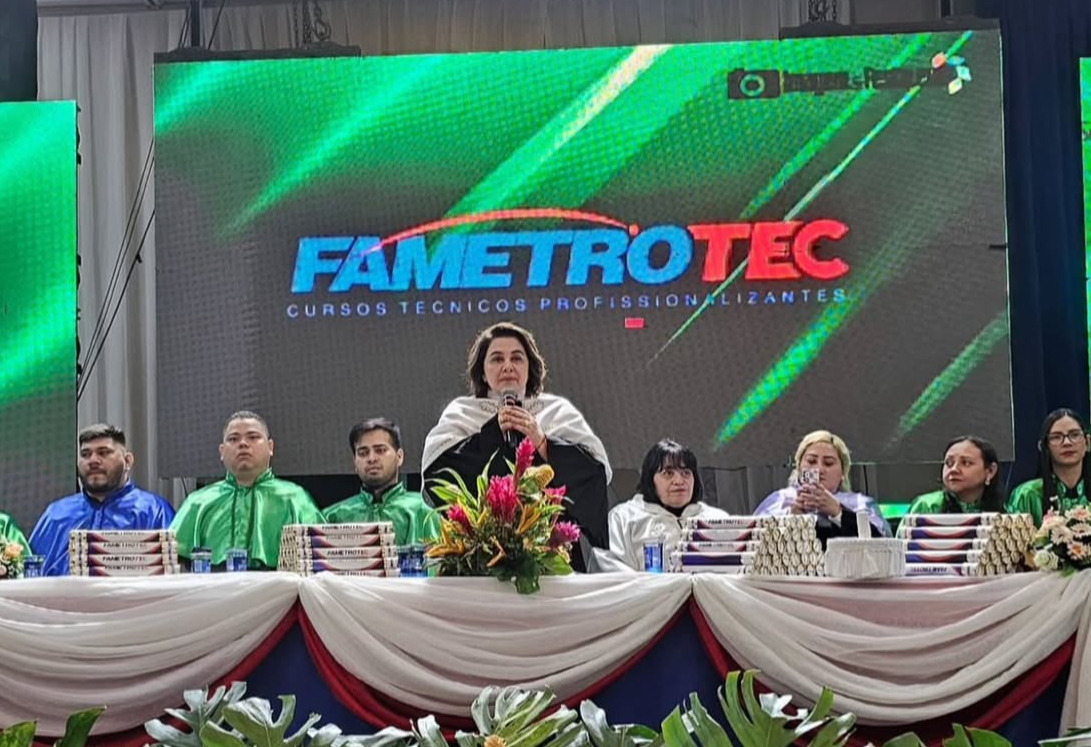 Na noite desta sexta-feira (27), Maria do Carmo participou da cerimônia de colação de grau da FametroTec, instituição de ensino técnico vinculada ao grupo Fametro, do qual é fundadora.