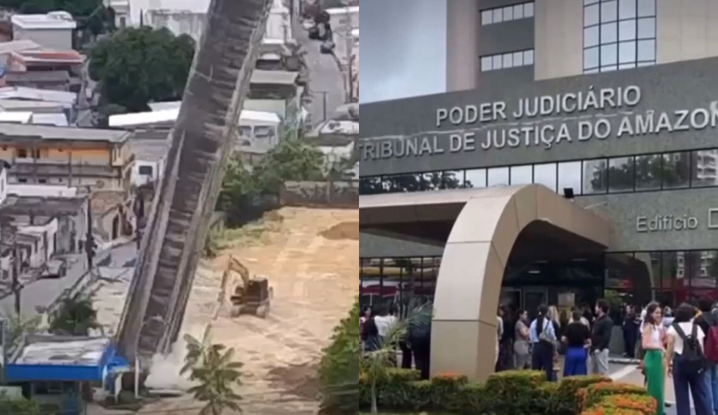 “O impacto foi causado pela derrubada de uma estrutura de concreto armado em uma propriedade próxima. A estrutura do edifício permanece segura”, informou o TJAM.