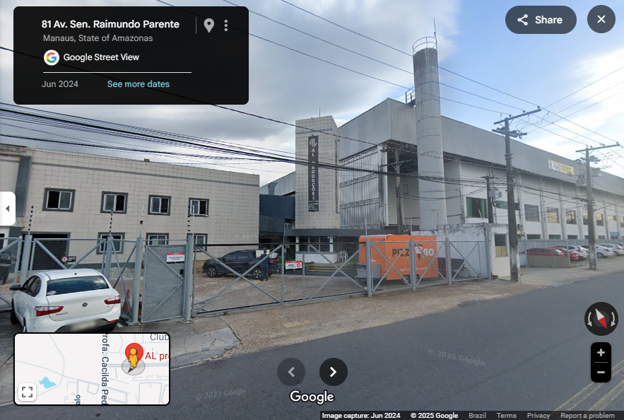 A sede da empresa está localizada no bairro Alvorada, em Manaus. O Convergente verificou o endereço informado junto à Receita Federal, que corresponde à localização visualizada por imagens de satélite.