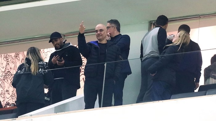 O ministro Alexandre de Moraes, do STF (Supremo Tribunal Federal), fez um gesto obsceno com o dedo médio ao acompanhar a vitória do Corinthians sobre o Palmeiras em partida válida pela Copa do Brasil, na noite de quarta-feira (30).