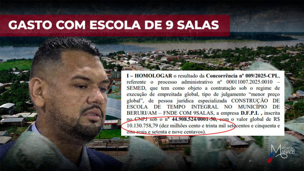 A Prefeitura de Beruri, município do interior do Amazonas administrado pelo prefeito Emerson Mello (PODE), pretende gastar cerca de R$ 10 milhões do dinheiro público para construir uma escola de 9 salas de aula na cidade. O contrato foi publicado na edição de sexta-feira, 22, no Diário Oficial dos Municípios do Amazonas (DOM-AM).