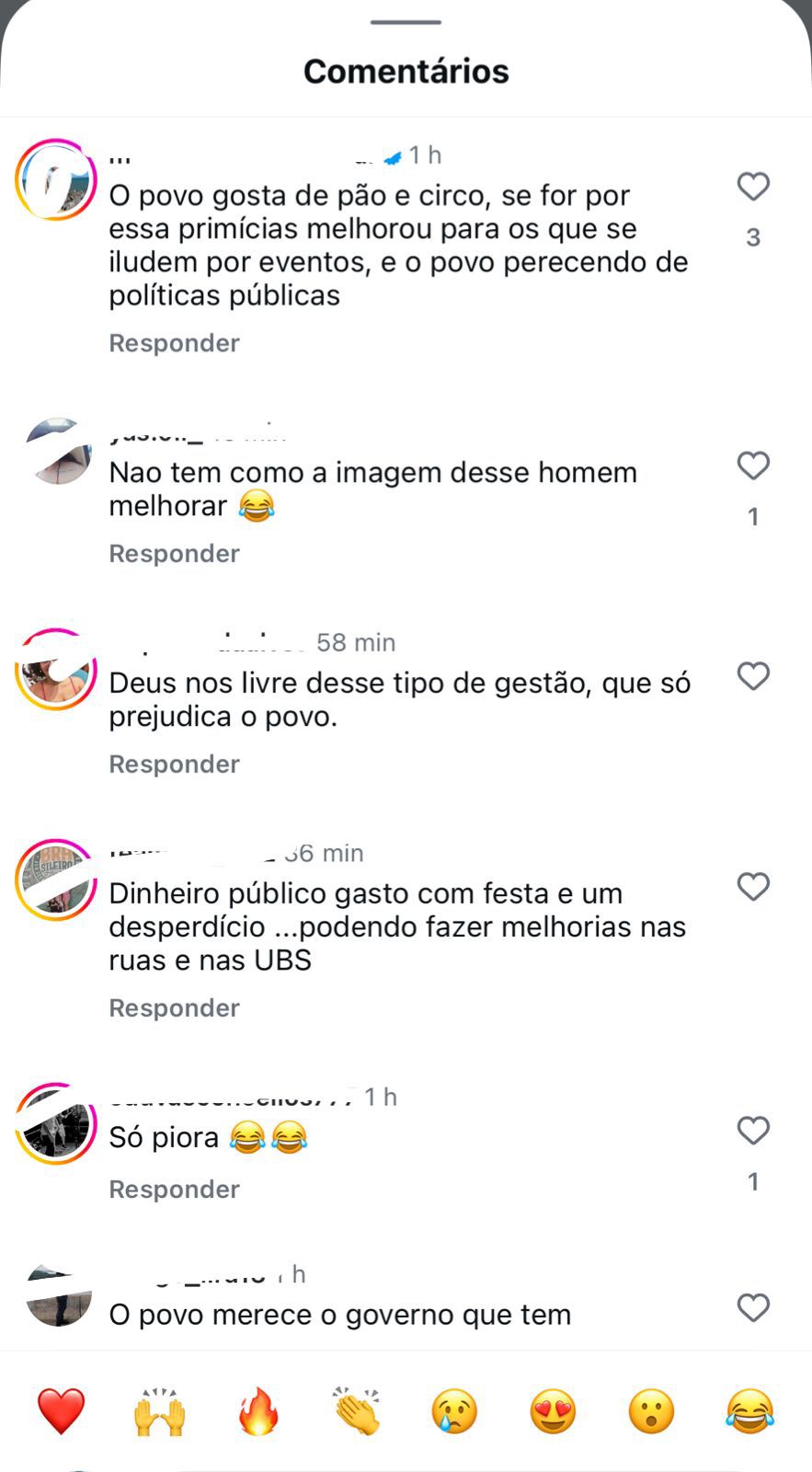“O povo gosta de pão e circo, se for por essas primícias, melhorou apenas para os que se iludem com eventos, enquanto o povo padece por falta de políticas públicas”, comentou outro usuário;