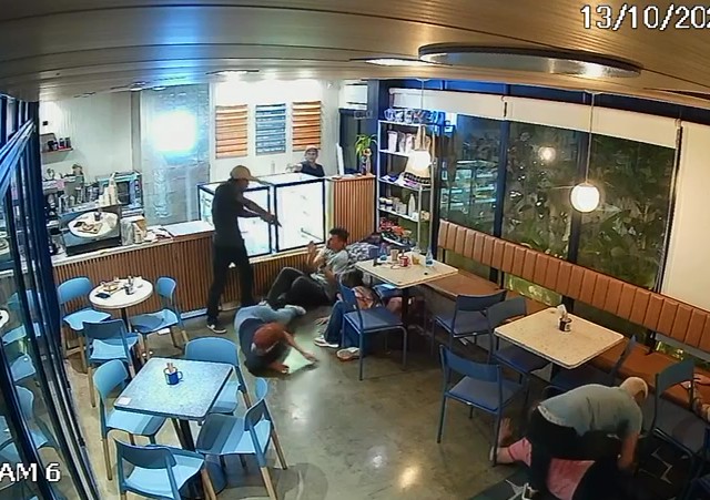 Dois criminosos armados assaltaram uma cafeteria na noite desta segunda-feira (13), na avenida Jacira Reis, bairro Dom Pedro, zona Centro-Sul de Manaus. O crime foi registrado por câmeras de segurança do estabelecimento e mostra o momento em que os assaltantes rendem clientes e funcionários.