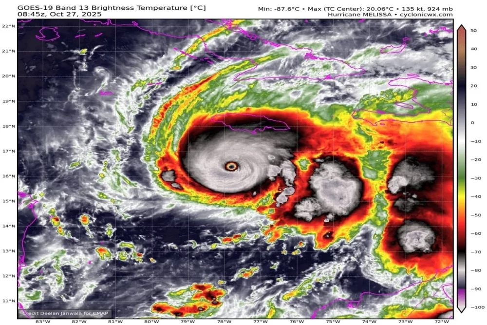 Um voo do 53º Esquadrão de Reconhecimento Climático da Força Aérea dos Estados Unidos sobrevoou o olho do furacão na segunda-feira (27), registrando imagens e dados que indicam intensificação dos ventos e pressão atmosférica extremamente baixa — fatores que confirmam o poder destrutivo do Melissa.