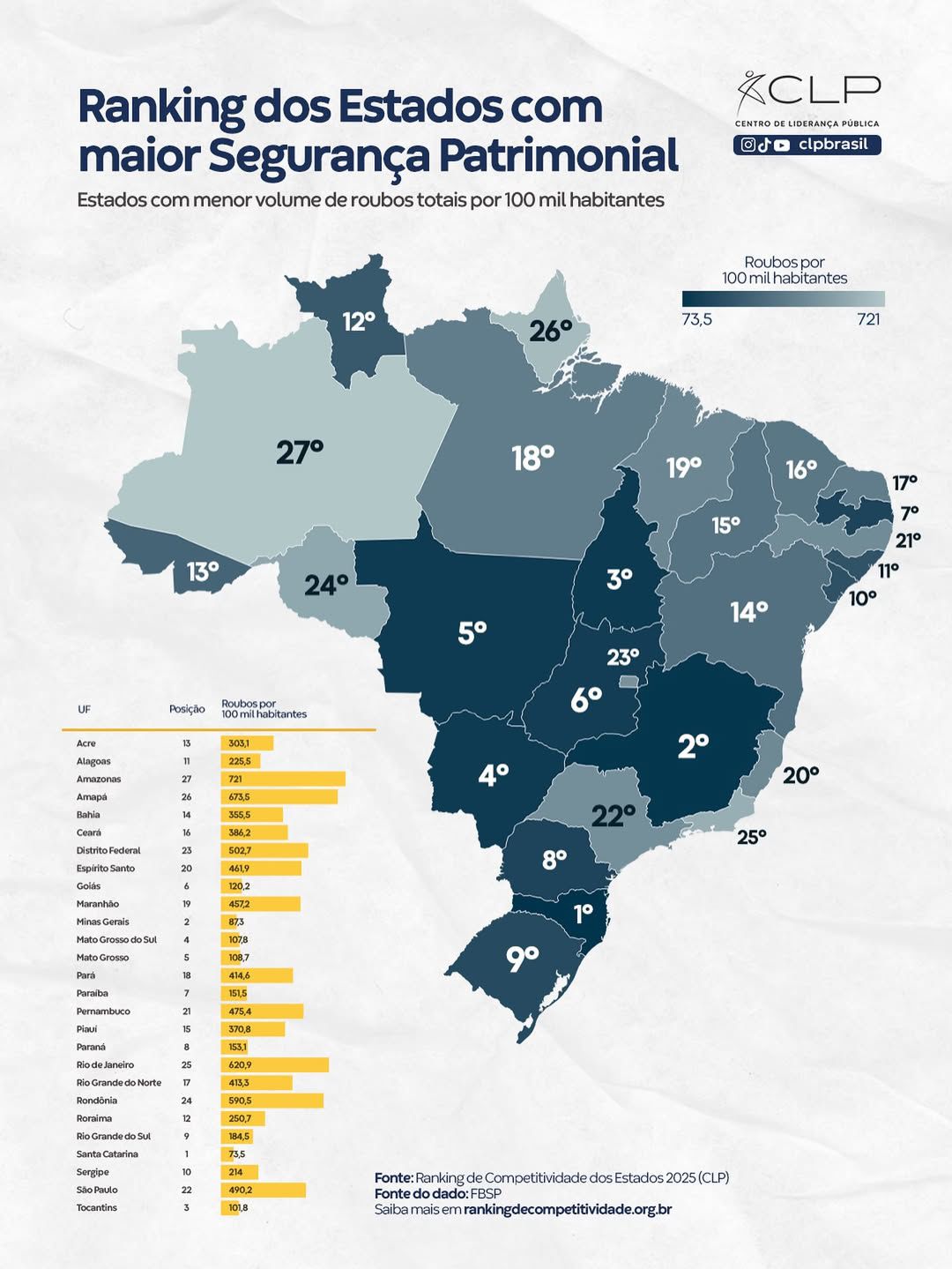 “O ranking nacional de segurança patrimonial, que mede o quanto os bens, prédios e pessoas estão protegidos contra roubos e invasões, mostra onde o cidadão vive mais protegido. E o Amazonas está entre os estados com os piores resultados”, afirmou Maria do Carmo, ao divulgar levantamento feito pelo Centro de Liderança Pública (CLP Brasil).
