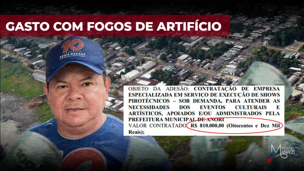A Prefeitura de Anori (a 234 quilômetros de Manaus), administrada pelo prefeito Régis Nazaré (Republicanos), pretende gastar R$ 810 mil dos cofres públicos com a contratação de shows pirotécnicos para eventos do município. O extrato do contrato foi publicado nesta sexta-feira, 5, no Diário Oficial dos Municípios do Amazonas (DOM-AM).