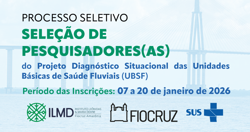 O Instituto Leônidas e Maria Deane (ILMD/Fiocruz Amazônia) divulgou nesta quarta-feira, 7, o edital do processo seletivo referente à seleção de pesquisadores para atuarem na segunda fase do Projeto Diagnóstico Situacional das Unidades Básicas de Saúde Fluviais (UBSF), realizado pelo Laboratório de História, Políticas Públicas e Saúde na Amazônia (Lahpsa), em parceria com o Ministério da Saúde (MS).
