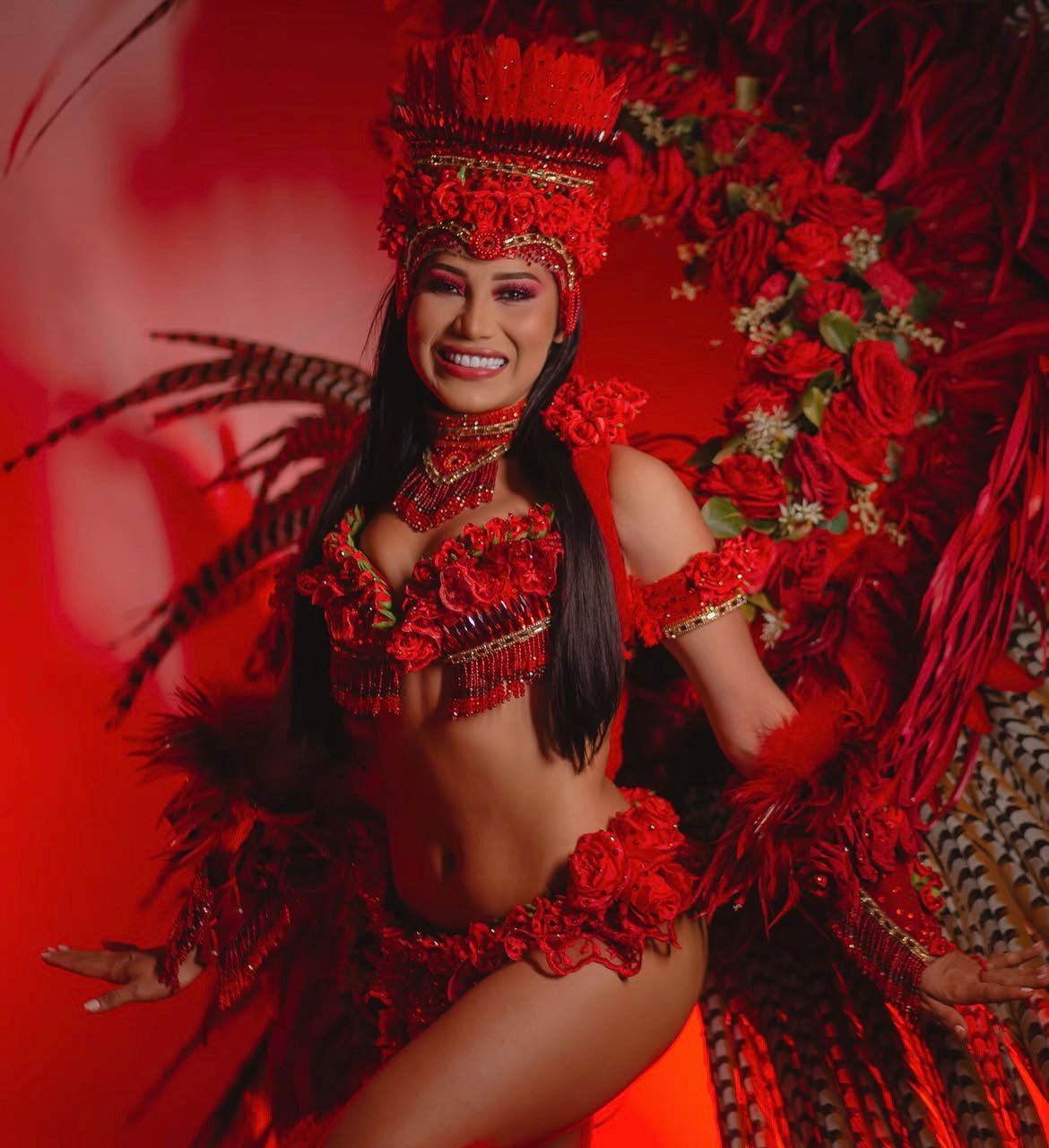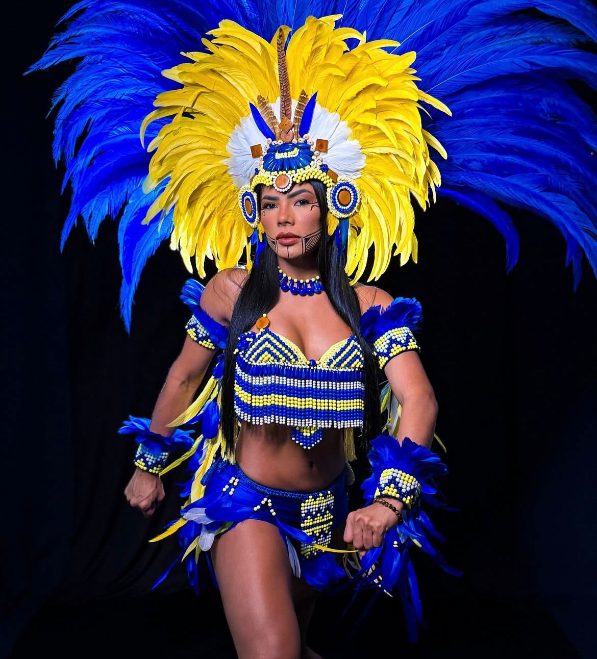 Marciele Albuquerque, de 32 anos, é Cunhã-Poranga do Boi Caprichoso. Natural de Juruti, no Pará, e residente em Manaus, ela construiu sua trajetória no festival como um dos principais símbolos do item feminino do boi azul, representando força, identidade e ancestralidade indígena.