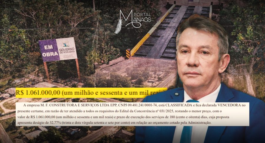 O objeto da contratação autorizada pela gestão do governador Antonio Denarium (PP) prevê a execução de obras de construção de pontes de madeira nas vicinais Concurso e Concurso I, com extensão total de 65 metros, na zona rural de Bonfim. Segundo a publicação, a proposta vencedora apresentou o menor preço, no valor de mais de R$ 1 milhão, e prazo de execução de 180 dias. Conforme os dados do IBGE, o município de Bonfim possui 13,9 mil habitantes, segundo o Censo de 2022.