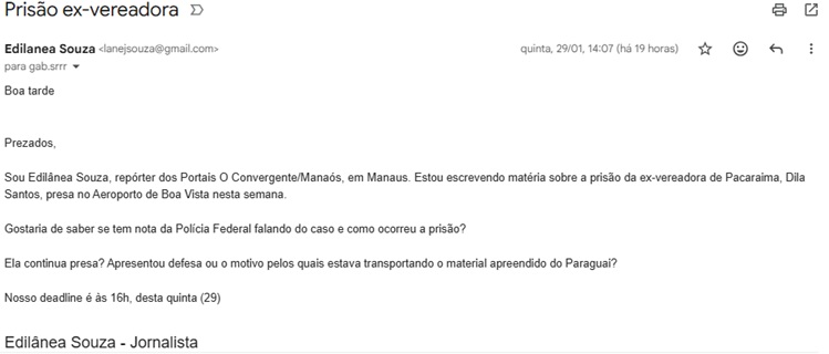 A reportagem tentou contato com Odilanei da Silva dos Santos por meio do direct do Instagram e também encaminhou solicitação de informações à Polícia Federal de Roraima por e-mail. Até a publicação desta matéria, não houve retorno.