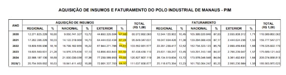 O principal efeito do atual cenário cambial sobre o Polo Industrial de Manaus ocorre por meio do custo dos insumos industriais, e não pela concorrência externa. Dados da SUFRAMA mostram que a estrutura produtiva instalada em Manaus é intensiva no uso de componentes, matérias-primas e bens intermediários importados, especialmente nos segmentos eletroeletrônico, de duas rodas, informática e plásticos técnicos.