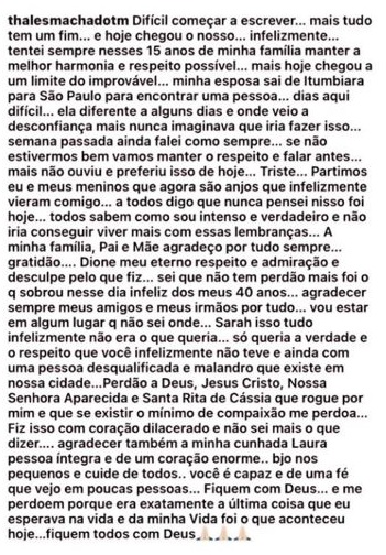 Thales Machado era genro do prefeito do município, Dione Araújo. Horas antes do crime, o secretário publicou nas redes sociais um vídeo ao lado dos filhos, acompanhado da mensagem: “Que Deus abençoe sempre meus filhos, papai ama muito”.