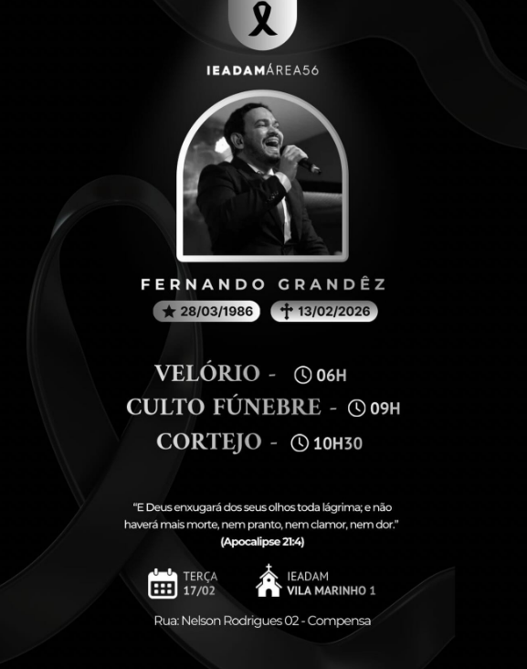 O culto fúnebre está previsto para as 9h, seguido do cortejo às 10h30 em direção ao sepultamento. A cerimônia reúne membros da comunidade evangélica, além de amigos e familiares, que prestam as últimas homenagens ao músico.
