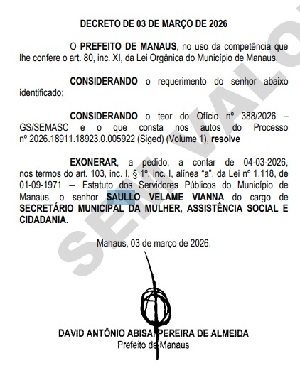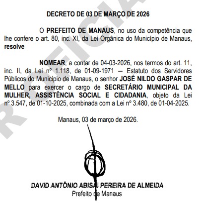 Com a saída de Saullo Vianna, a Secretaria Municipal da Mulher, Assistência Social e Cidadania (Semasc) passa a ser comandada por Nildo Mello, conforme anunciado pelo prefeito de Manaus, David Almeida, nesta terça-feira (3).