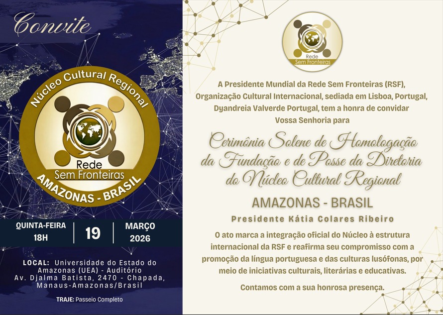 O Amazonas dará um novo passo na valorização de sua produção cultural com a posse da diretoria do núcleo estadual da Rede Sem Fronteiras, marcada para o próximo dia 19 de março, em Manaus. O evento reunirá escritores, jornalistas, pesquisadores e agentes culturais que passam a integrar oficialmente a organização internacional no estado, com a missão de fortalecer a presença da cultura amazônica no cenário lusófono.