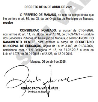 Leia mais: Renato Jr oficializa exonerações e nomeações em áreas estratégicas da prefeitura