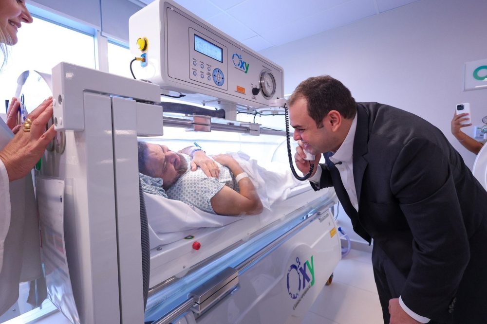 A Oxigenoterapia Hiperbárica consiste na inalação de oxigênio puro em ambiente pressurizado, aumentando a quantidade de oxigênio no sangue e favorecendo a recuperação de tecidos comprometidos. Desde fevereiro, mais de mil procedimentos já foram realizados, com sessões que duram entre 90 e 120 minutos e auxiliam no tratamento de infecções graves, queimaduras e feridas de difícil cicatrização, além de contribuir para reduzir o tempo de internação hospitalar.