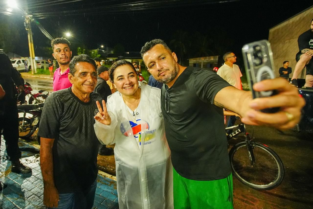Mesmo sob forte chuva, moradores acompanharam a passagem da caravana da pré-candidata pelas ruas do município. A atividade fez parte de uma agenda que prevê a passagem por nove cidades localizadas nas calhas dos rios Purus e Juruá ao longo de cinco dias.