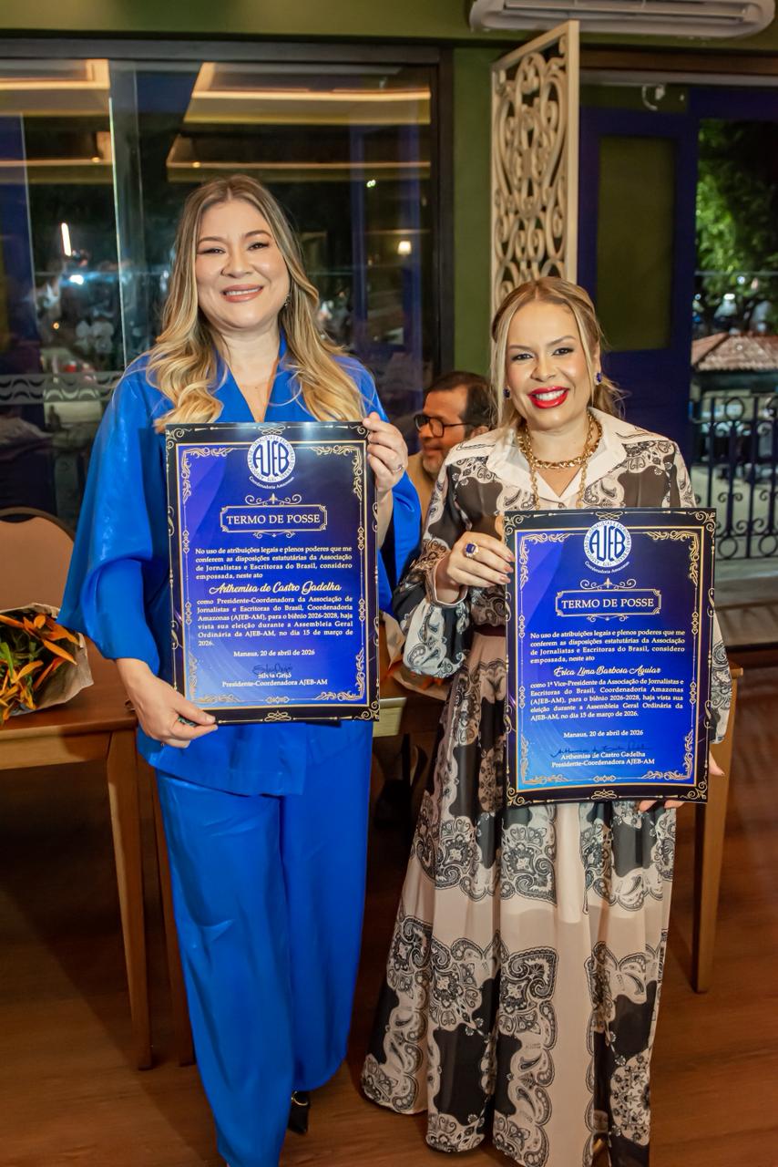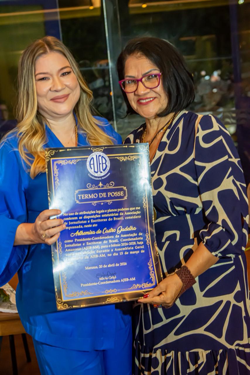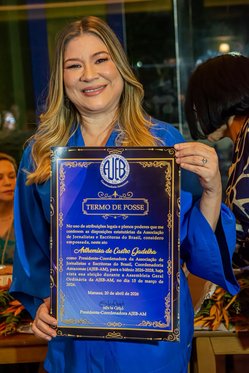 A nova diretoria da Associação de Jornalistas e Escritoras do Brasil – seccional Amazonas (AJEB-AM) foi empossada na segunda-feira (20), em cerimônia que marcou o início do mandato para o período de 2026 a 2028. Arthemisa Gadelha assume a presidência da instituição, tendo Erica Lima Barbosa Aguiar como 1ª vice-presidente.