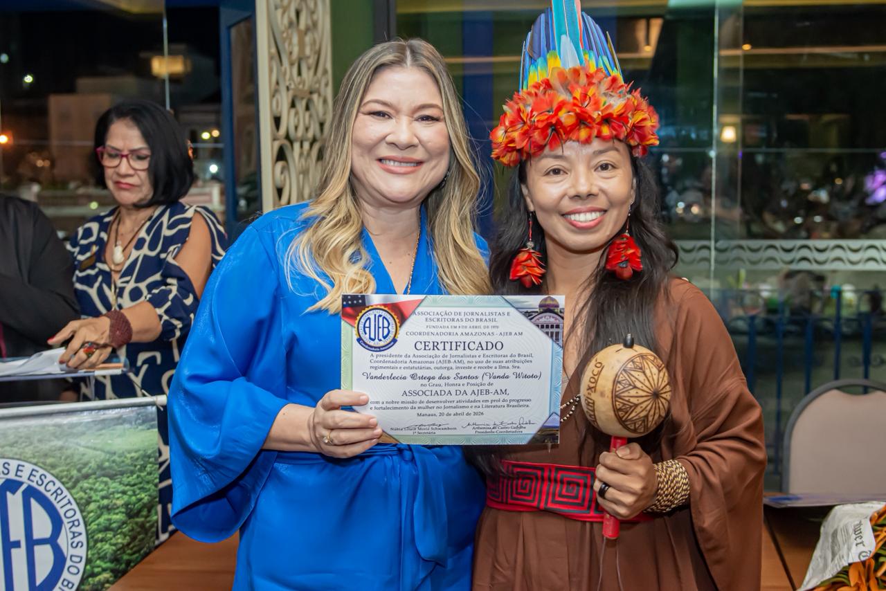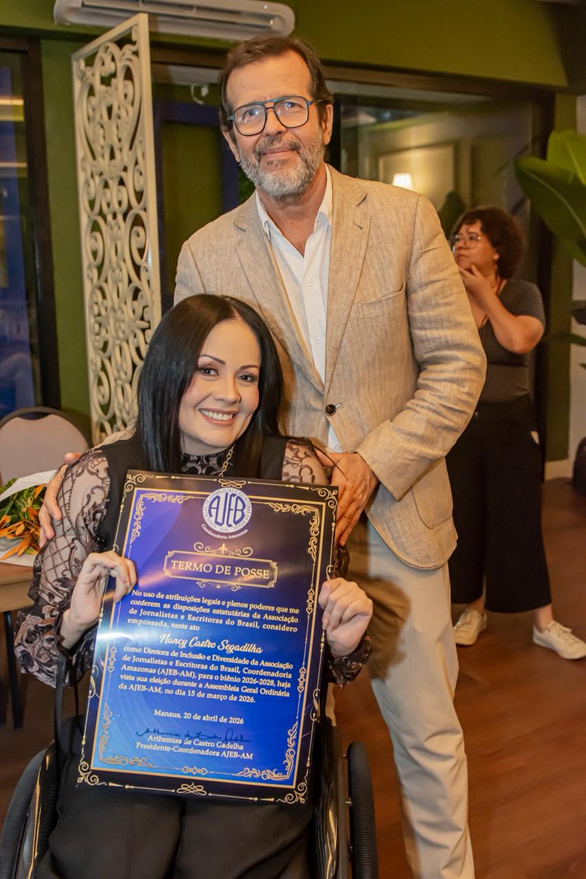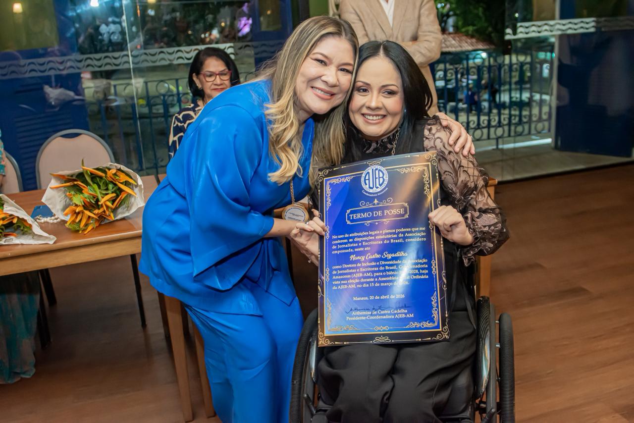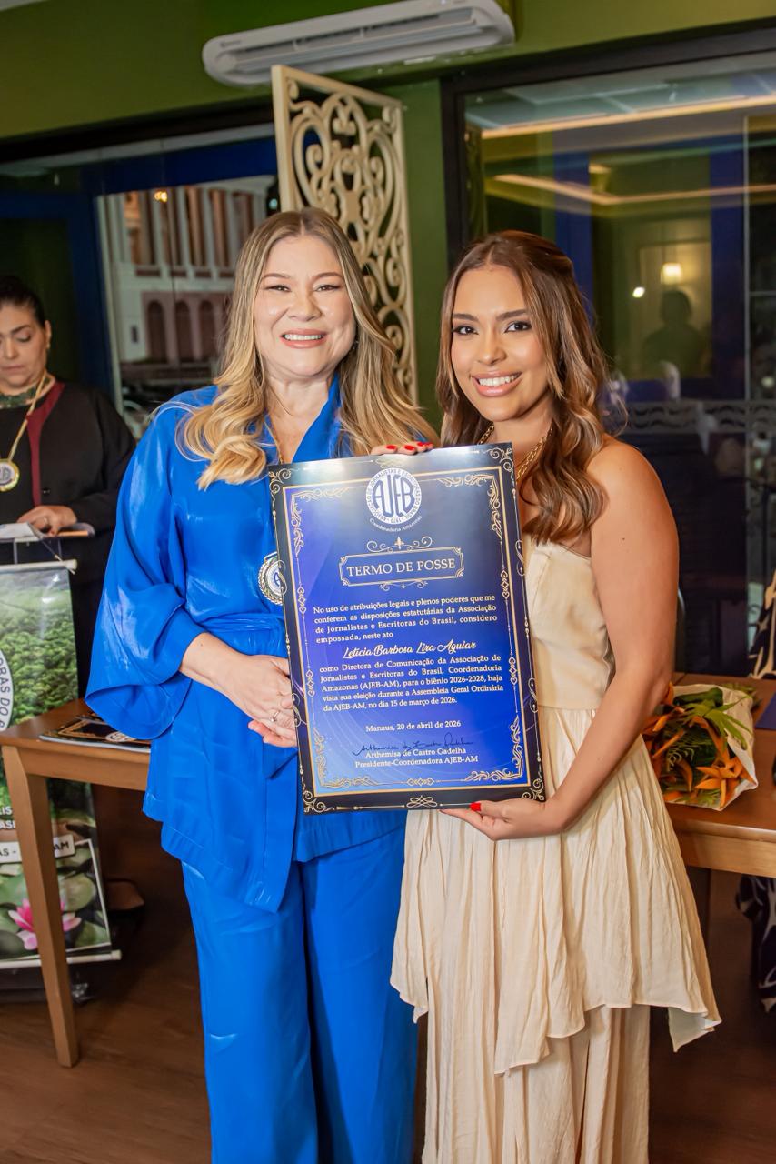 A nova diretoria da Associação de Jornalistas e Escritoras do Brasil – seccional Amazonas (AJEB-AM) foi empossada na segunda-feira (20), em cerimônia que marcou o início do mandato para o período de 2026 a 2028. Arthemisa Gadelha assume a presidência da instituição, tendo Erica Lima Barbosa Aguiar como 1ª vice-presidente.